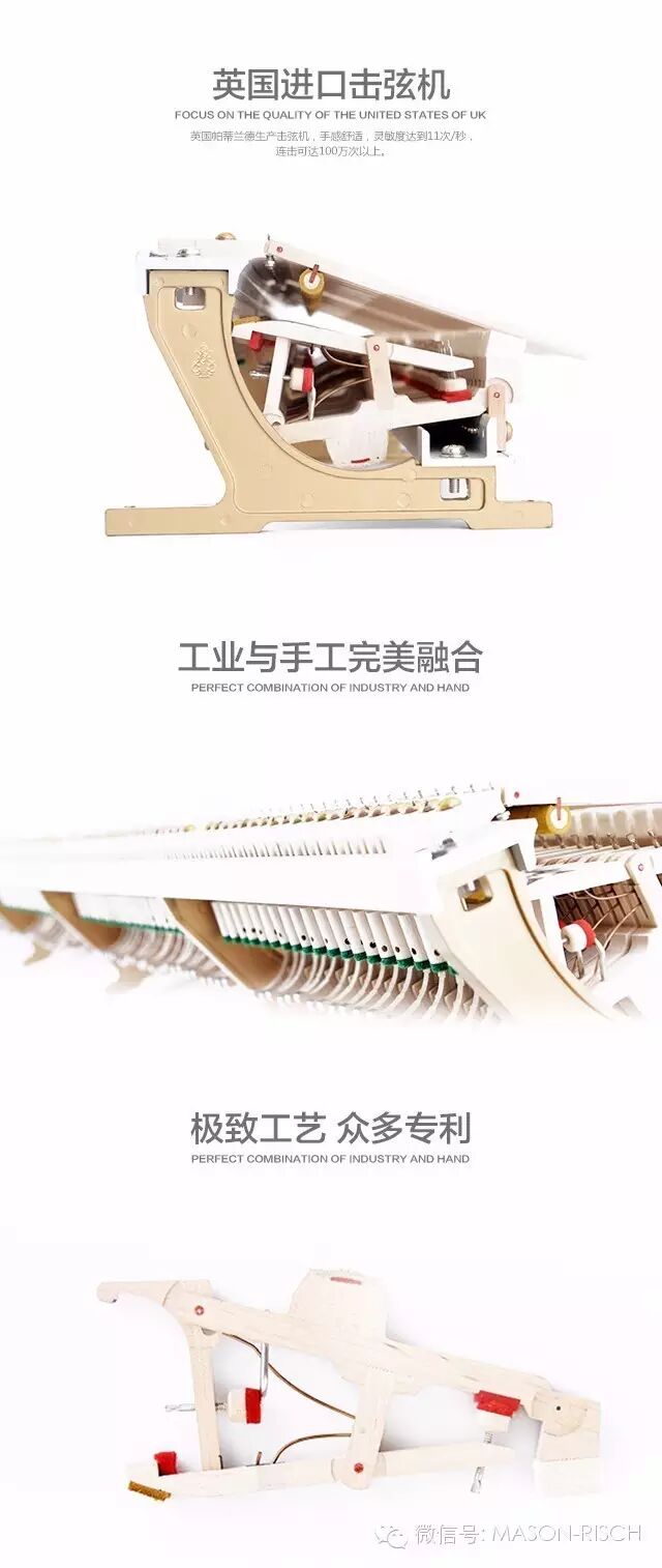 4) 梭织研磨技术生产的榔头——硬度恒久不变,是梅森丽舍音色的保证。表现力更丰富,增强音色,富感染力。